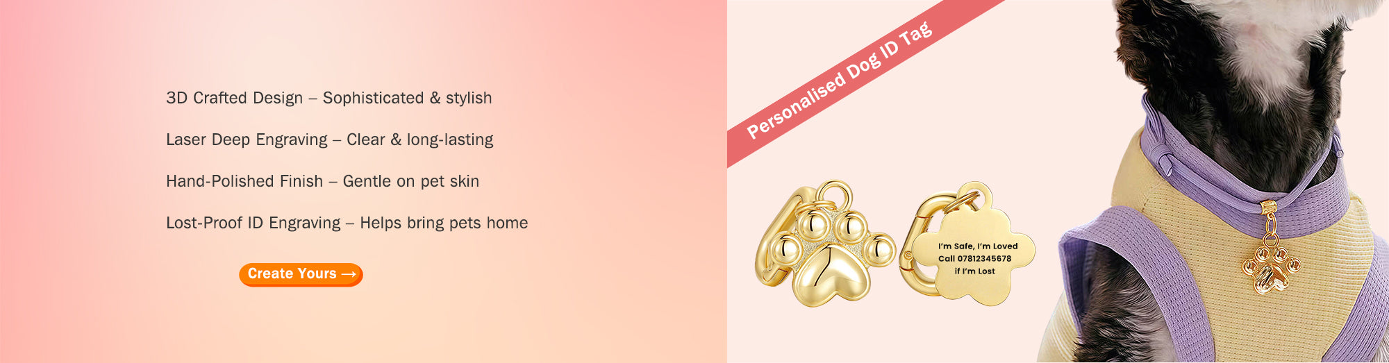 Custom pet accessories that keep your dog safe, recognizable, and stand out.