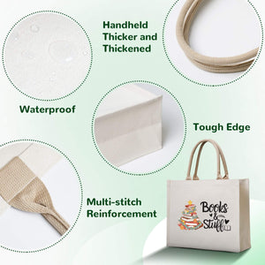 PREMIUM MATERIAL - Made of high-quality canvas, durable, sturdy, and water-washable by hand. The double stitches make the tote bag strong enough to hold many items without a scratch. This reusable canvas bag can be used for a long time and help to reduce the impact on the environment.