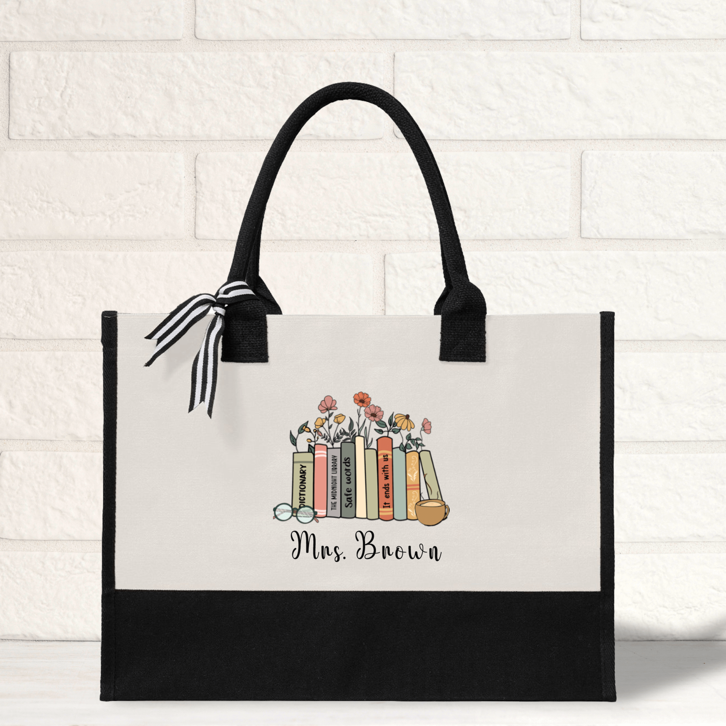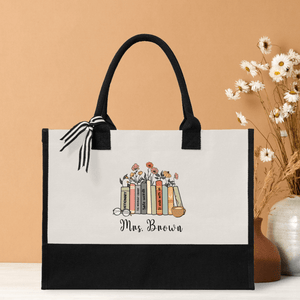 Books with Flowers Personalized Teacher Tote Bag Teacher Gifts
