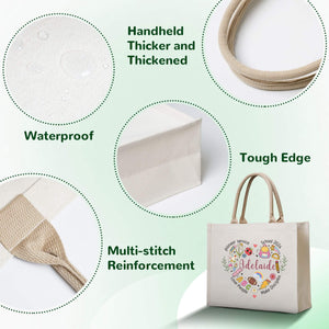 PREMIUM MATERIAL - Made of high-quality canvas, durable, sturdy, and water-washable by hand. The double stitches make the tote bag strong enough to hold many items without a scratch. This reusable canvas bag can be used for a long time and help to reduce the impact on the environment.