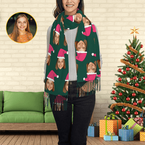 Home Christmas Scarf Custom Pink Santa Hat Face Personalized Photo Scarf Soft Winter Scarfs