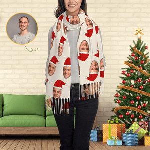 Custom Santa Hat Face Personalized Photo Scarf Soft Winter Scarfs