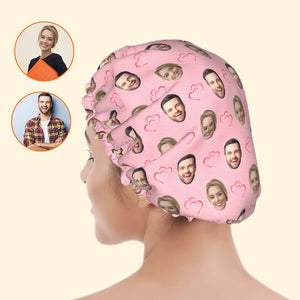 Double Heart Personalized Photo Shower Cap – Customizable Shower Cap for Couples