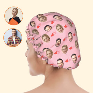Double Heartshape Photo Shower Cap – Custom Shower Cap for Couples Valentine's Day Gift