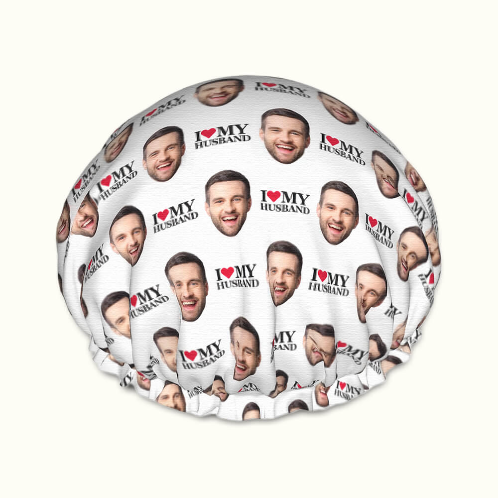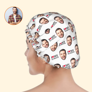 I Love My Husband Shower Cap – Custom Photo Shower Cap Gift for Couples