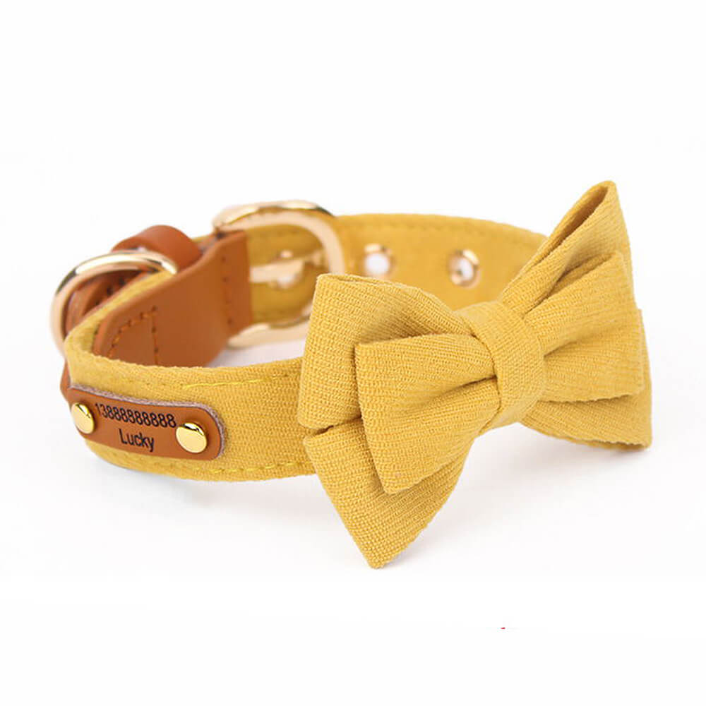 Home Bow Tie Dog Collar Layered Bow Tie Collar with Nameplate