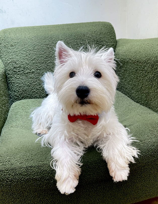 No. The bowtie is made with soft, high-quality slanted brushed fabric and reinforced with a leather base and metal details, ensuring a comfortable fit that won’t rub or irritate your dog—even for small or sensitive breeds.