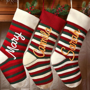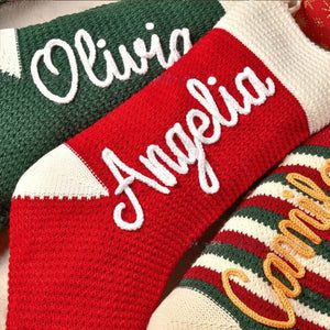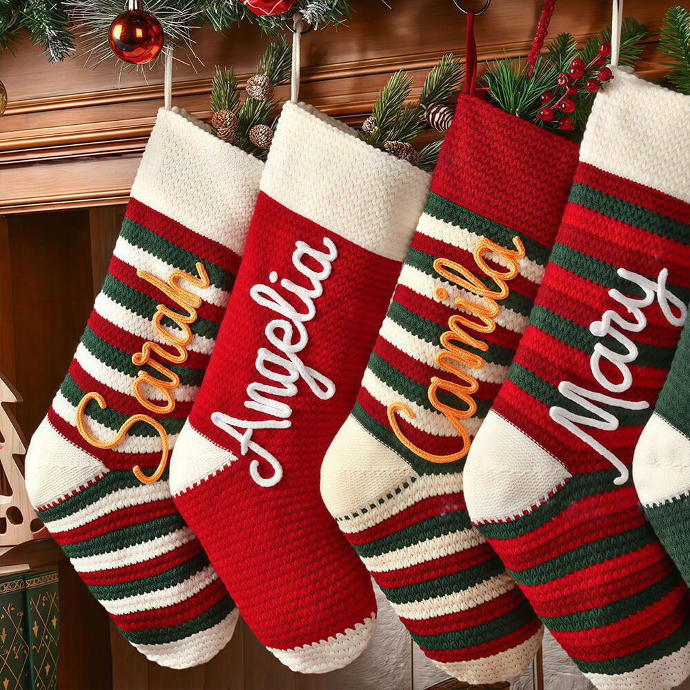 Each stocking can be personalized with embroidered names, making it a heartfelt keepsake for every family member — even kids and pets. 🎄