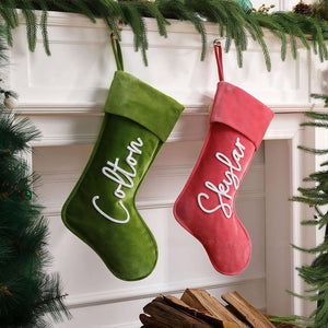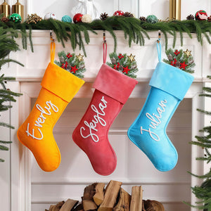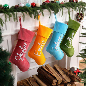 Each stocking can be personalized with embroidered names, making it a heartfelt keepsake for every family member — even kids and pets. 🎄
