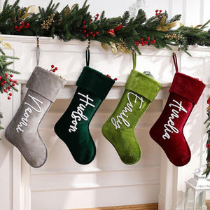 Each stocking can be personalized with embroidered names, making it a heartfelt keepsake for every family member — even kids and pets. 🎄