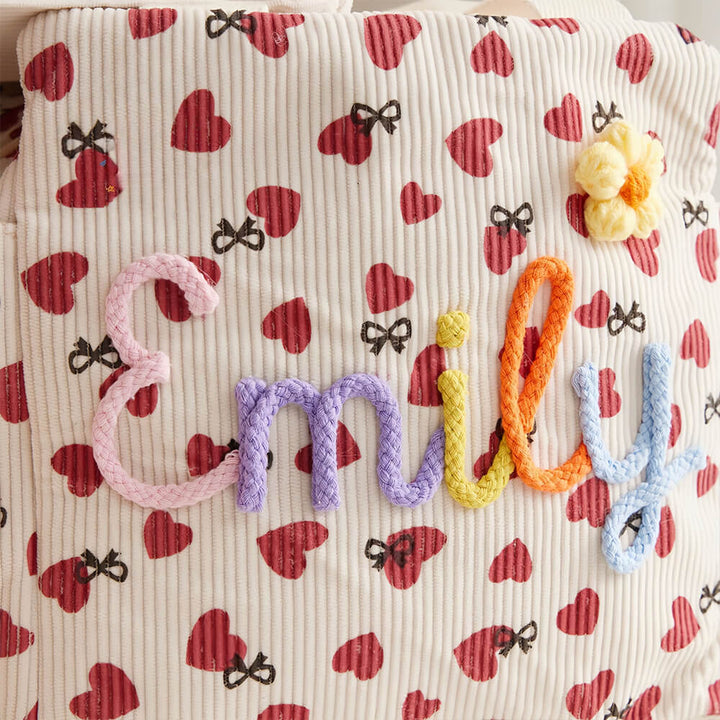 Our Personalised Name Lunch Bag features soft corduroy fabric, adorable 3D crochet patches, and beautifully embroidered names — creating a lunch bag that kids instantly fall in love with.