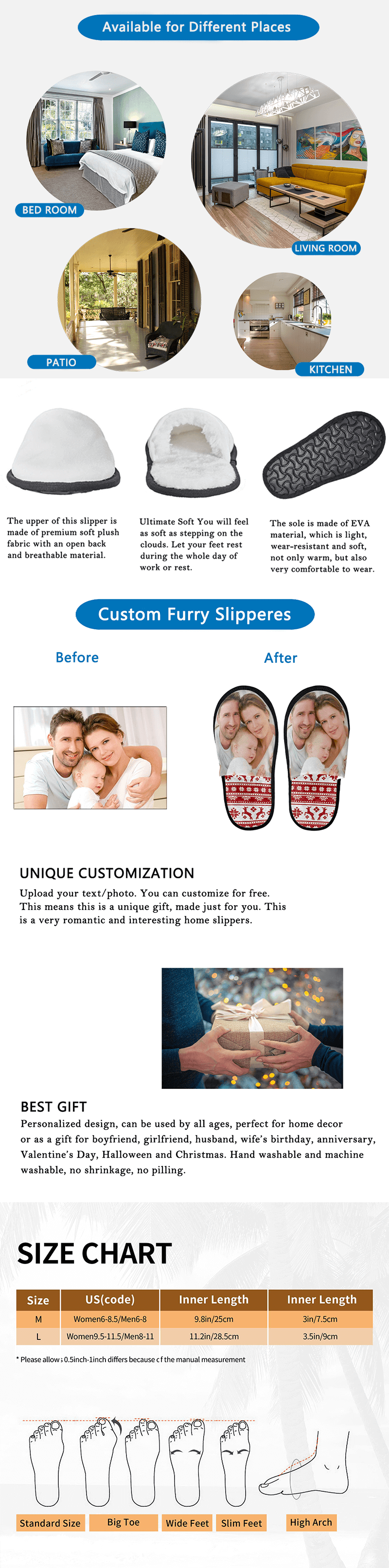 - These comfortable Slippers can be customized using TEXT, PHOTOS, OR BOTH